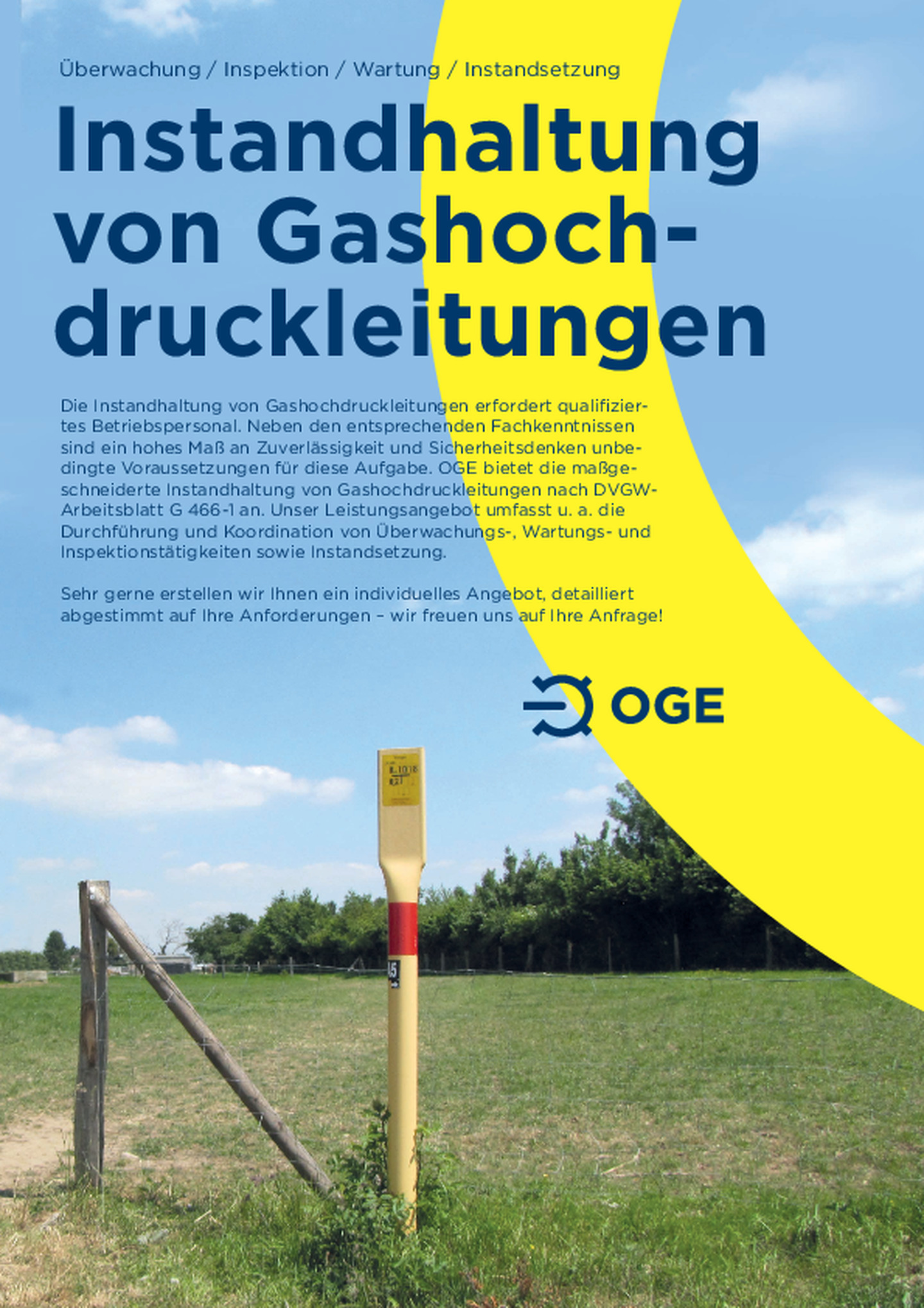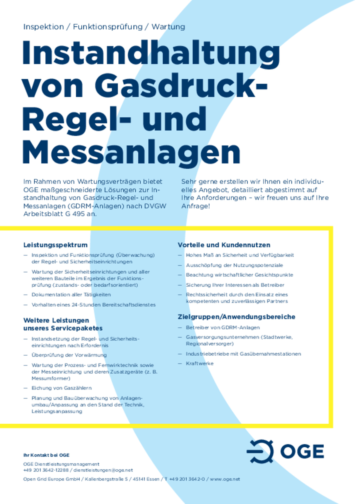 Ein Dienstleistungsvertrag mit OGE entsprechend der DVGW-Arbeitsblätter regelt die Instandhaltung von