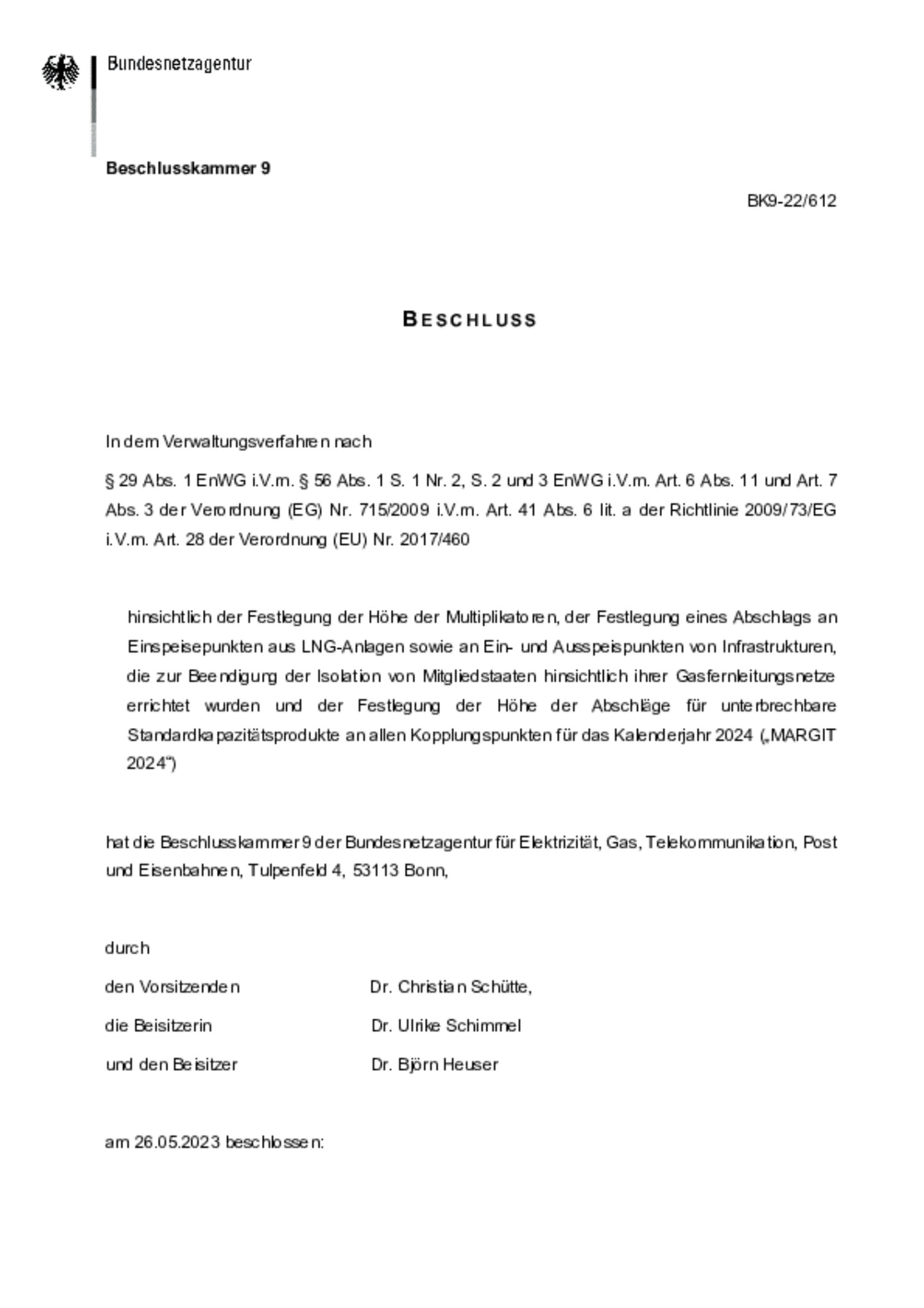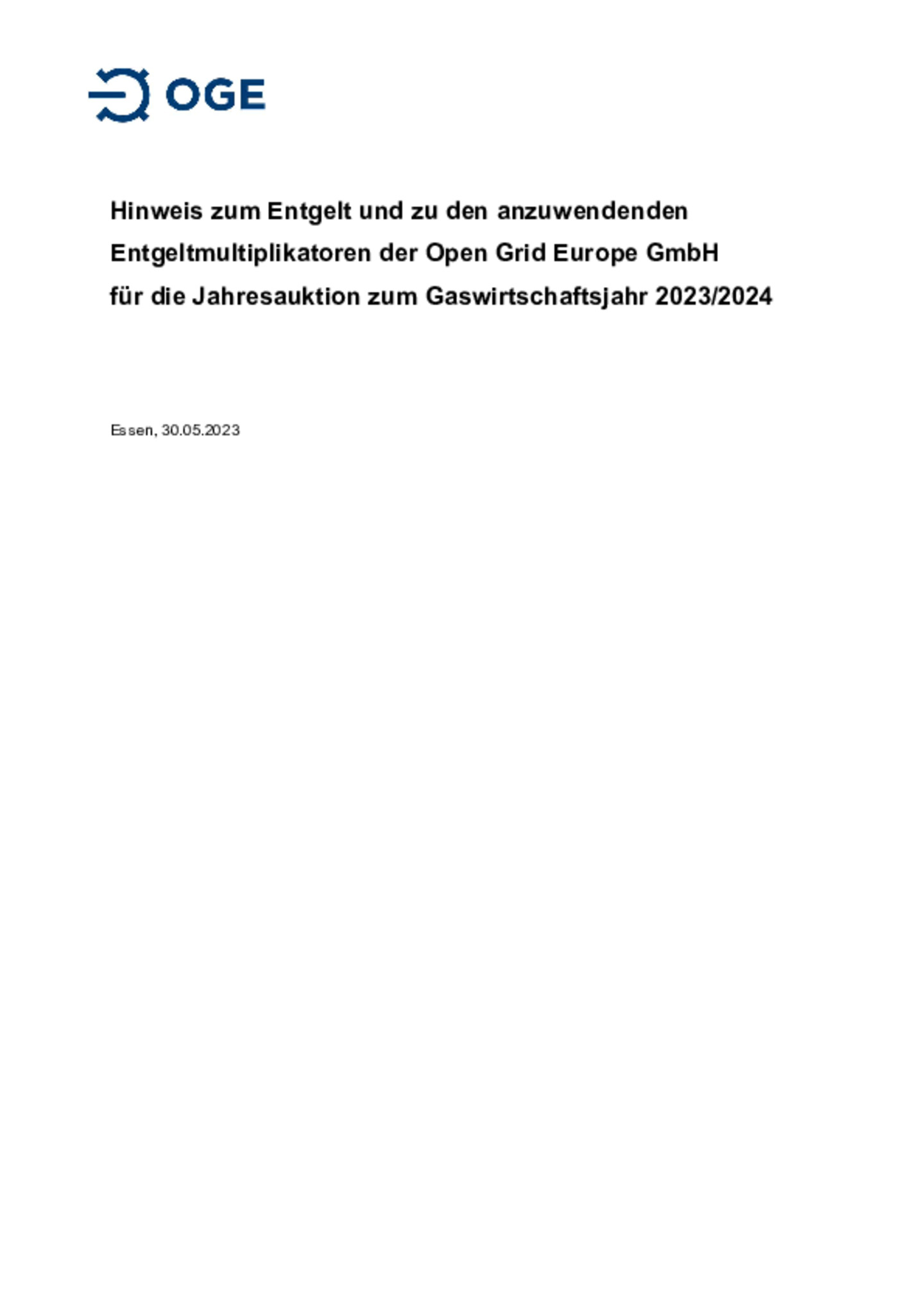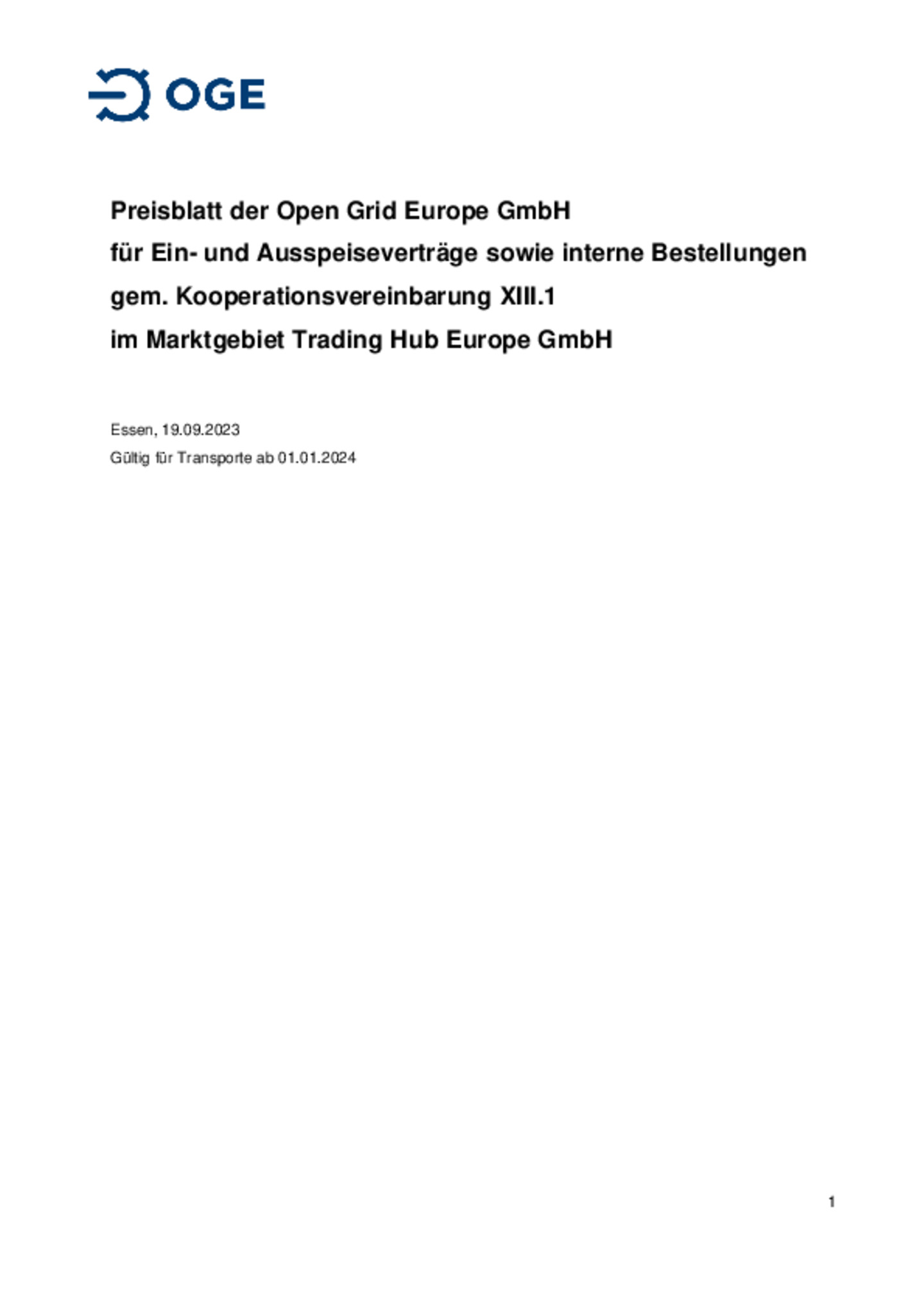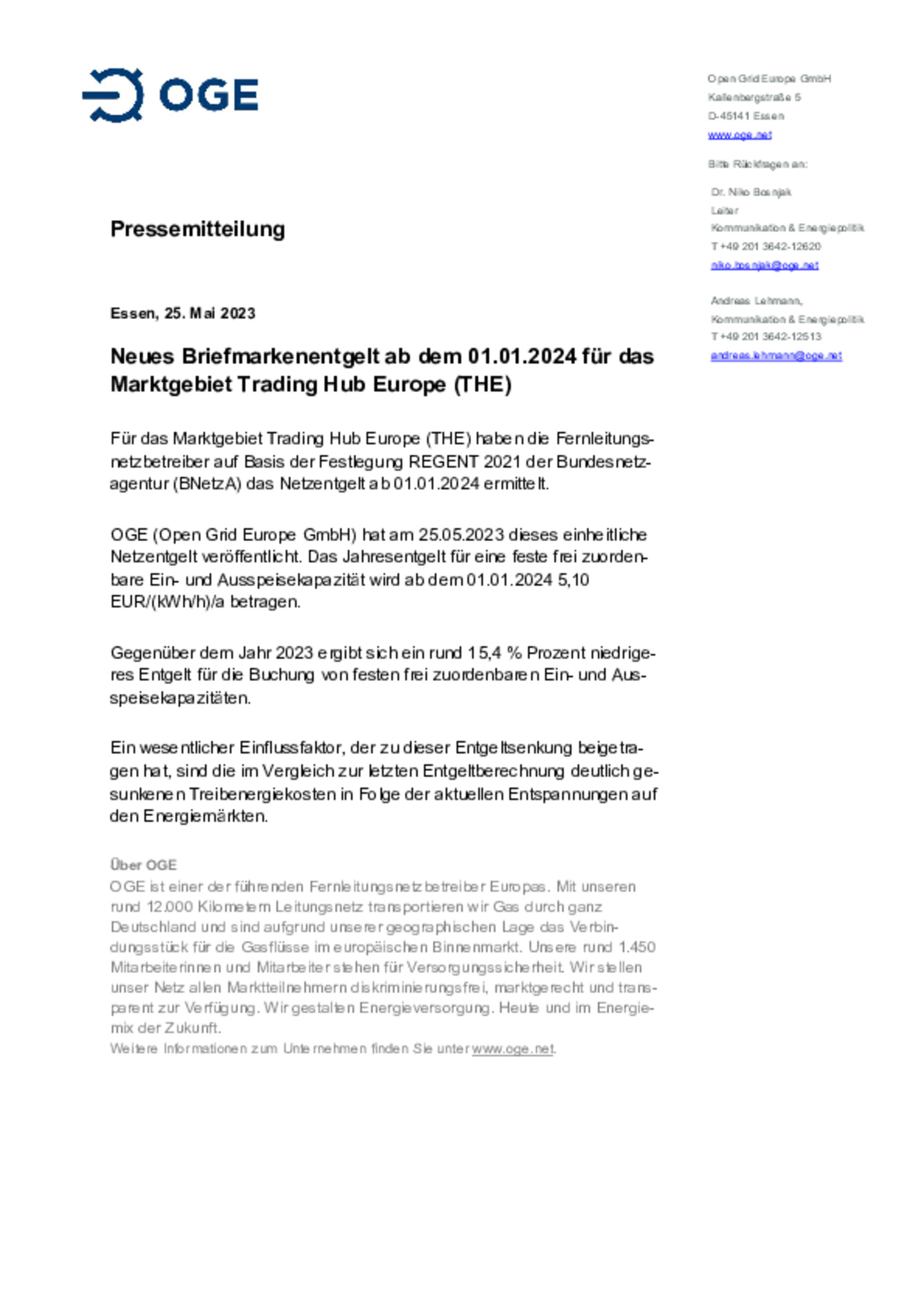 Für das Marktgebiet Trading Hub Europe (THE) haben die Fernleitungs-netzbetreiber auf Basis der Festlegung REGENT 2021 der Bundesnetza-gentur (BNetzA) das Netzentgelt ab 01.01.2024 ermittelt.