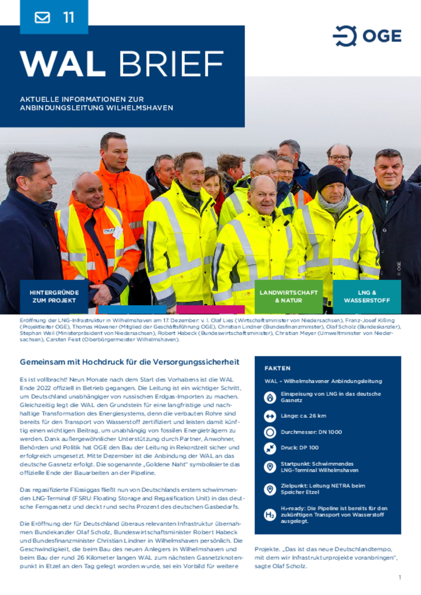 Zuverlässige und sichere Fertigstellung der WAL in Rekordgeschwindigkeit. WAL transportiert LNG aus Wilhelmshaven in das deutsche Ferngasnetz und trägt zur deutschen Energieversorgung bei. Leitung …ist H2-ready und ein wichtiger Eckpfeiler für die künftige Wasserstoffwirtschaft in Deutschland