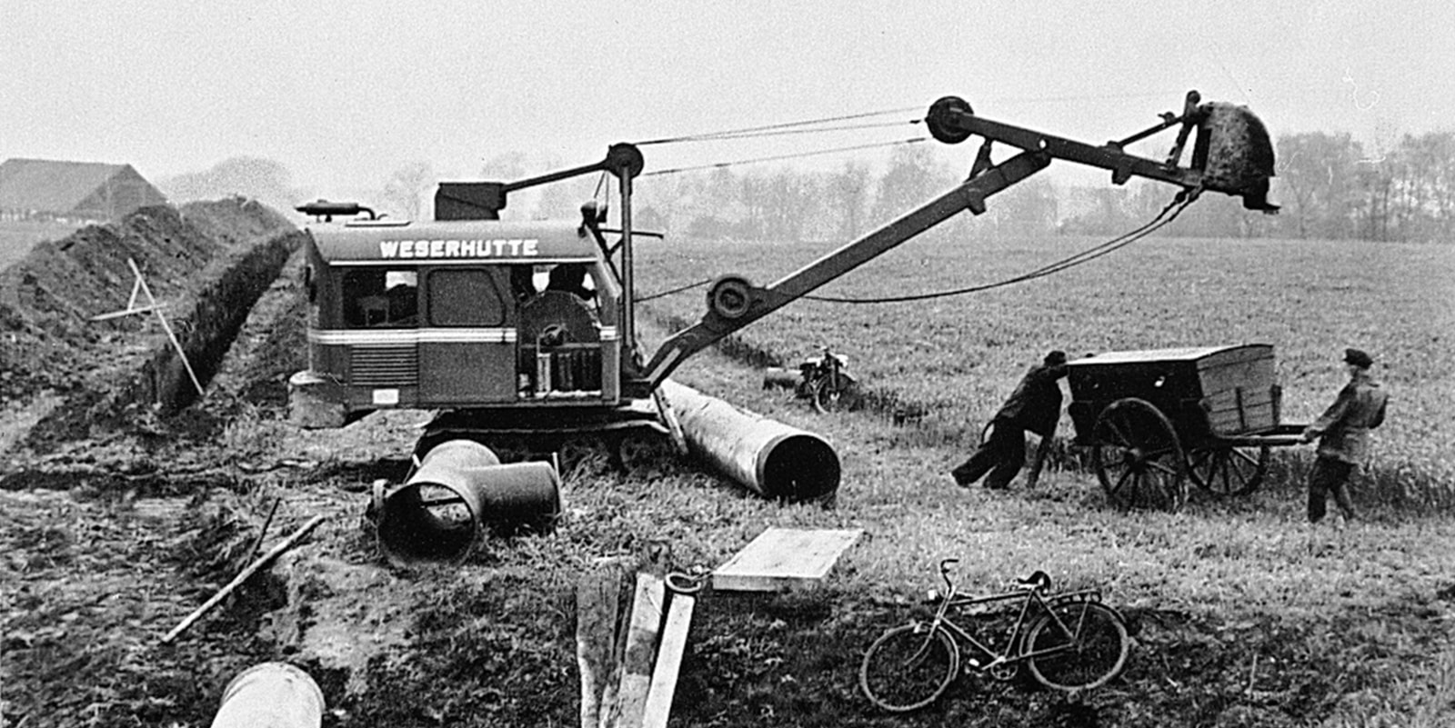 Der Bau einer 75 km langen Erdgasleitung von Bentheim zu den Chemischen Werken Hüls läutet das industrielle Erdgaszeitalter in Deutschland ein.