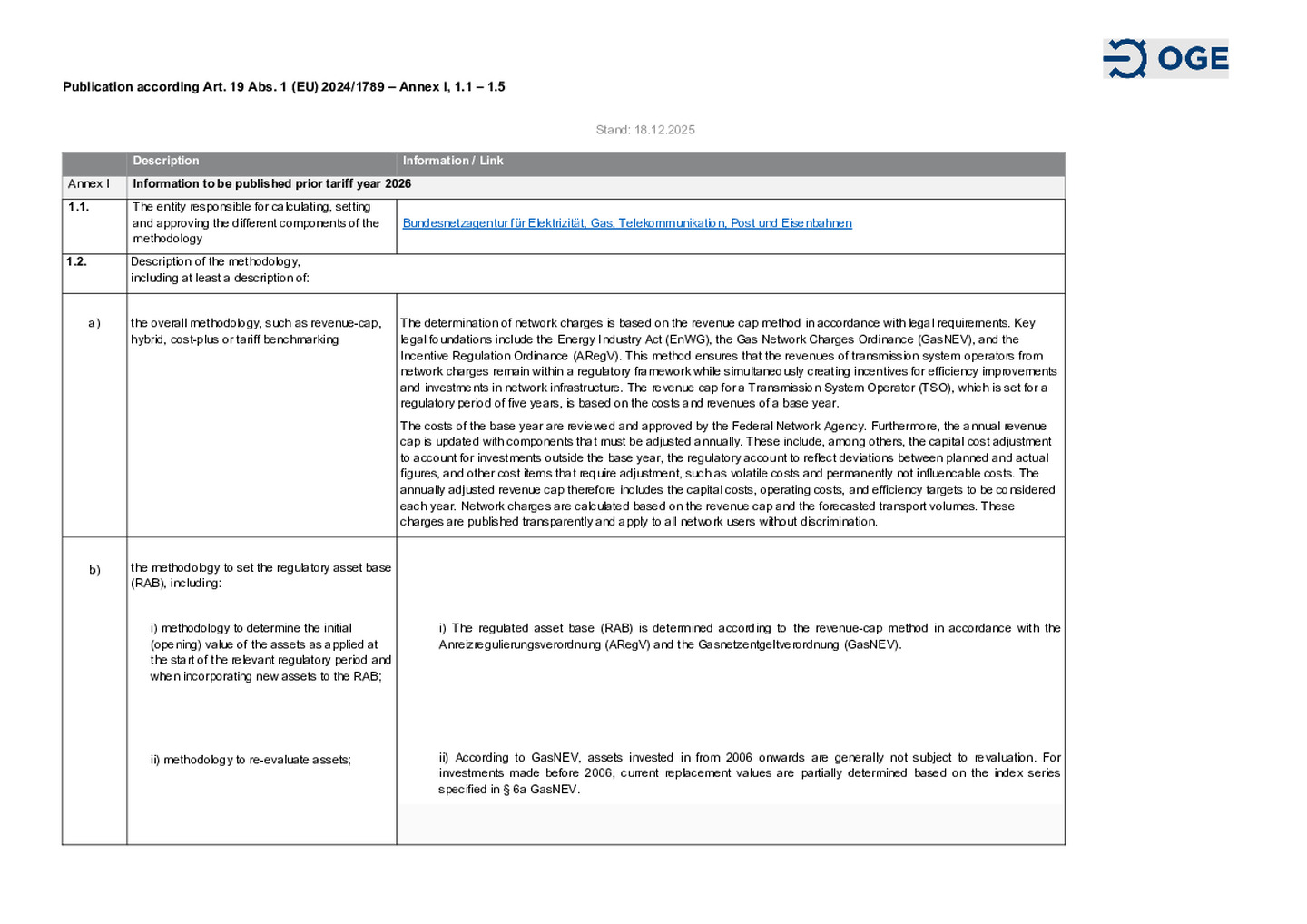 Publication by Open Grid Europe GmbH of Information according to regulation (EU) 2024/1789.