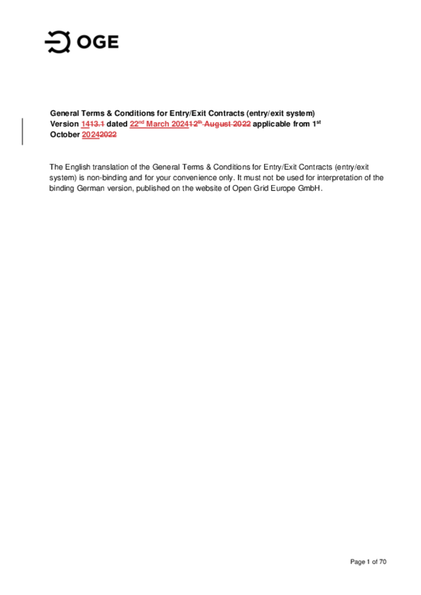 Supplementary Terms and Conditions of Open Grid Europe GmbH