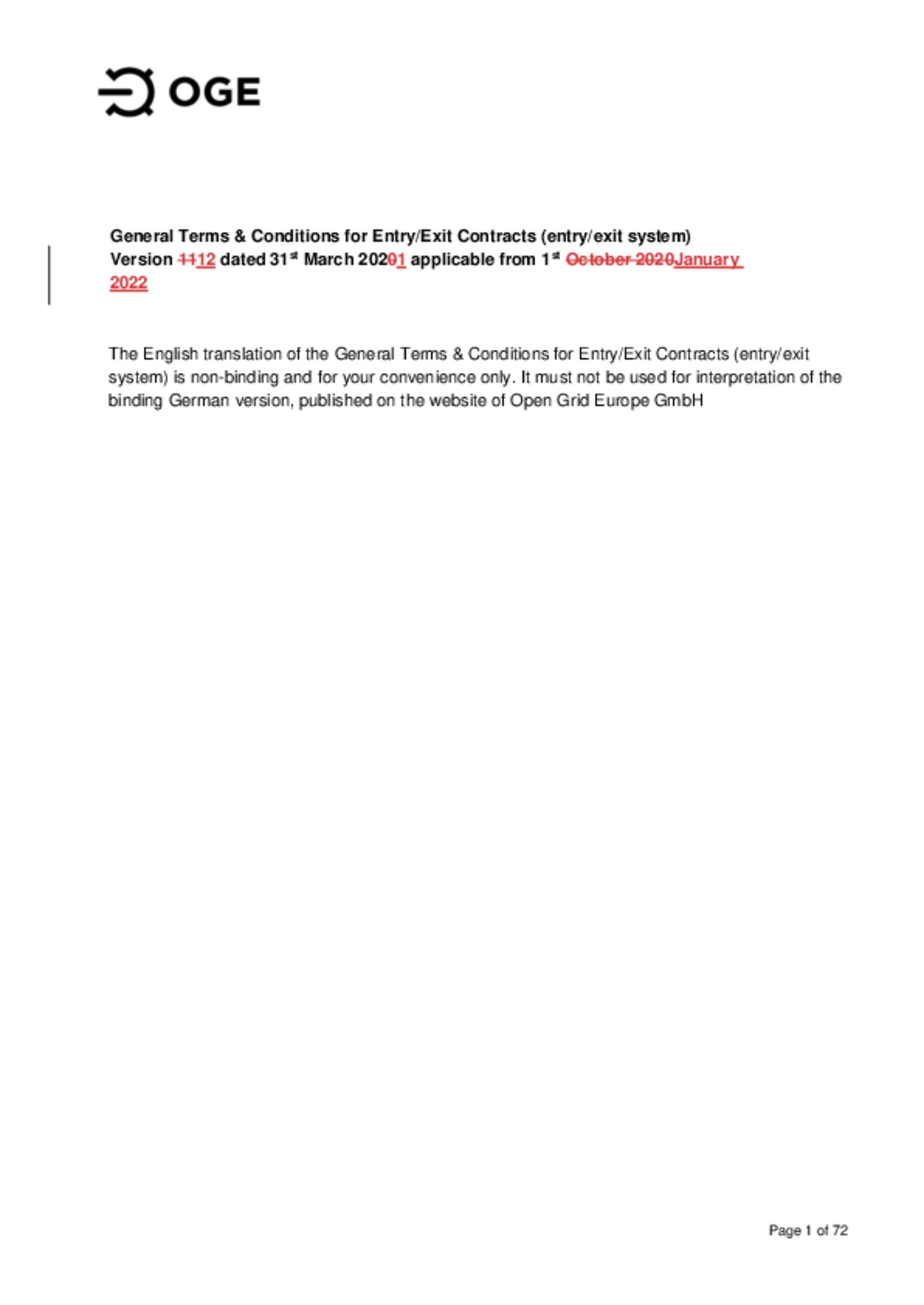 Valid for gas shipments from 1 January 2022