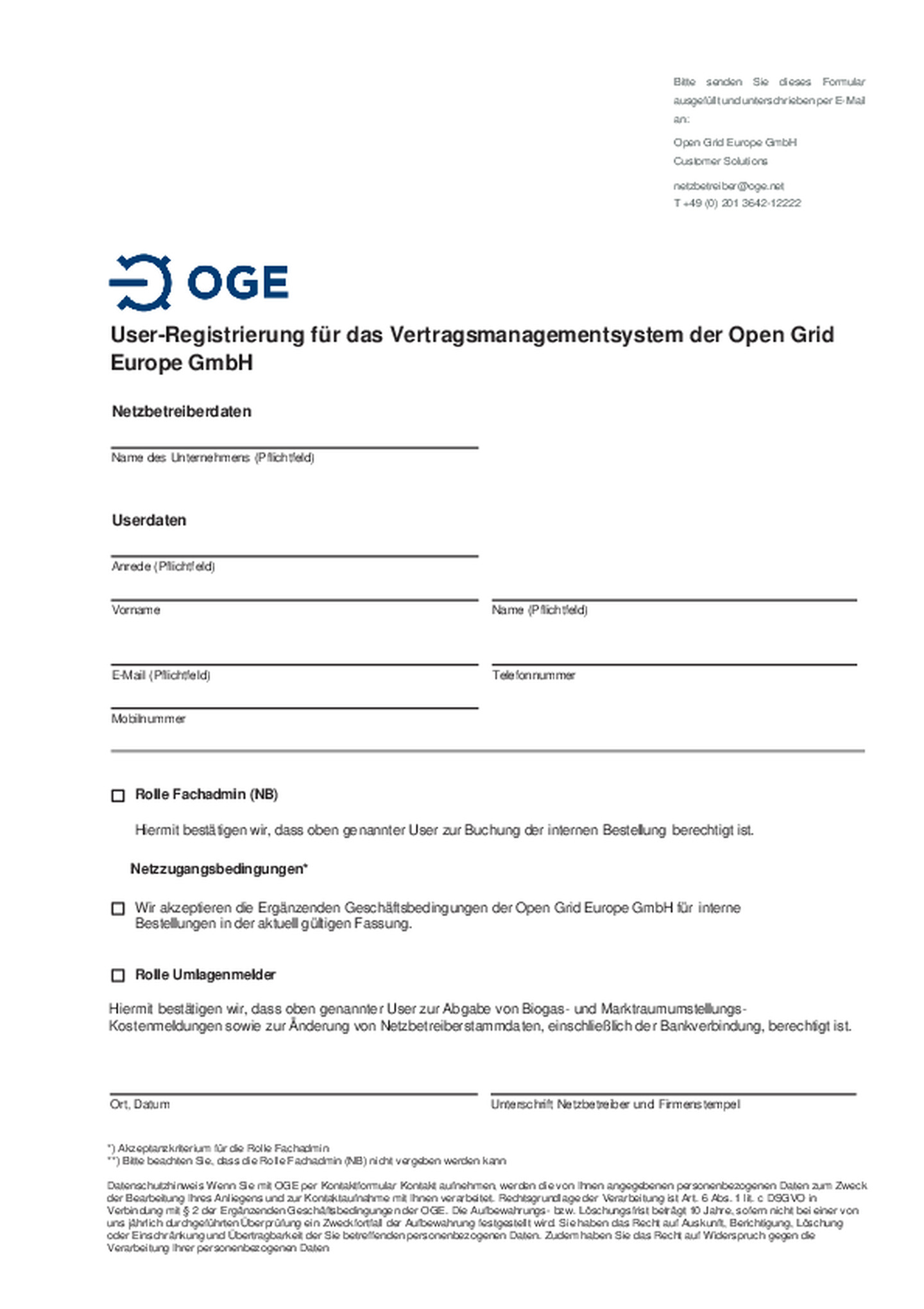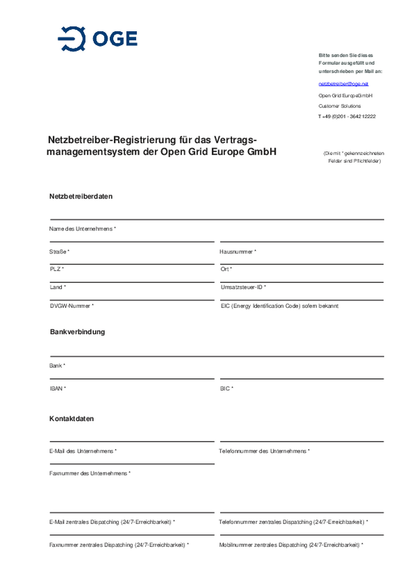 Open Grid Europe offers its shippers a form for the efficient handling of enquiries pursuant to Section 38 GasNZV. The use of the form is intended to ensure that Open Grid Europe promptly obtains all… information required to process your enquiry efficiently.