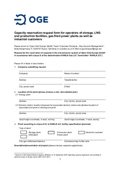 Open Grid Europe offers its shippers a form for the efficient handling of enquiries pursuant to clause 8 of the determination KARLA Gas 2.0. The use of the form is intended to ensure that Open Grid …Europe promptly obtains all information required to process your enquiry efficiently.