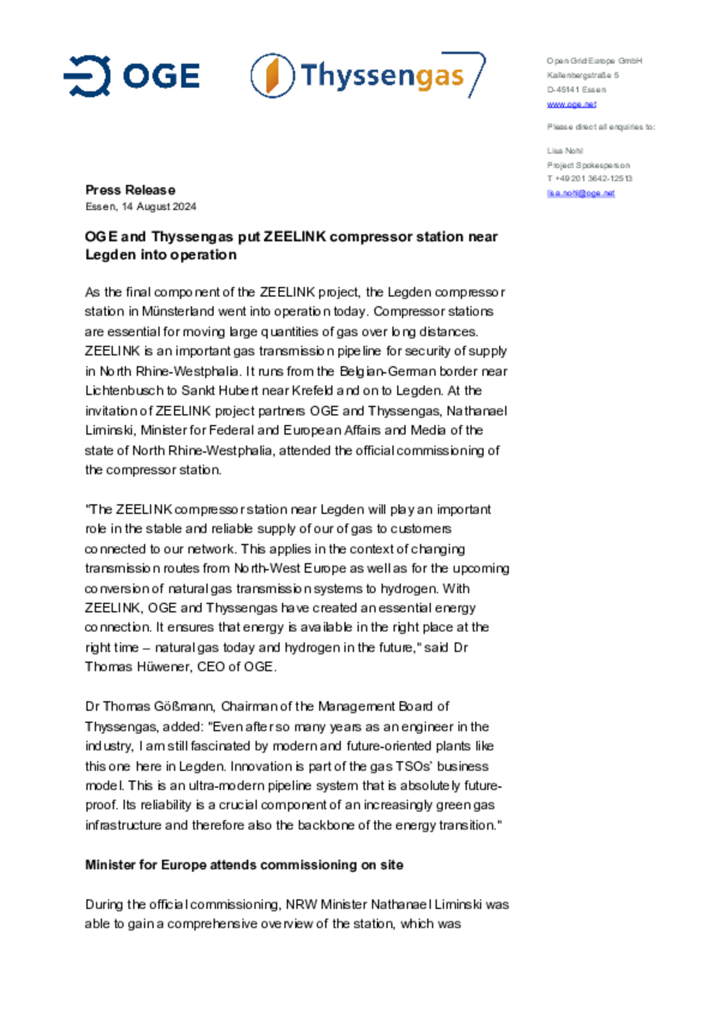 OGE has successfully arranged the succession for the position of technical managing director: On July 1, 2024, Detlef Brüggemeyer will take over the technical department at OGE as a member of the …management board.